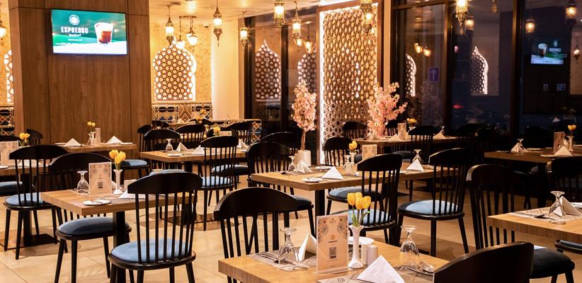 На территории отеля работают рестораны Arabesque, Casa Americana с интернациональной кухней (завтрак сервируется в формате «шведский стол», обед и ужин – по меню), ресторан The Red East at the Kingsgate Canal, лобби-лаундж Kings Cafe, бар у бассейна Poolside, кальянная MYST.