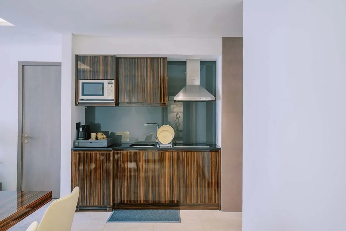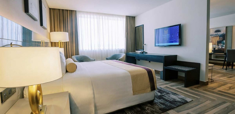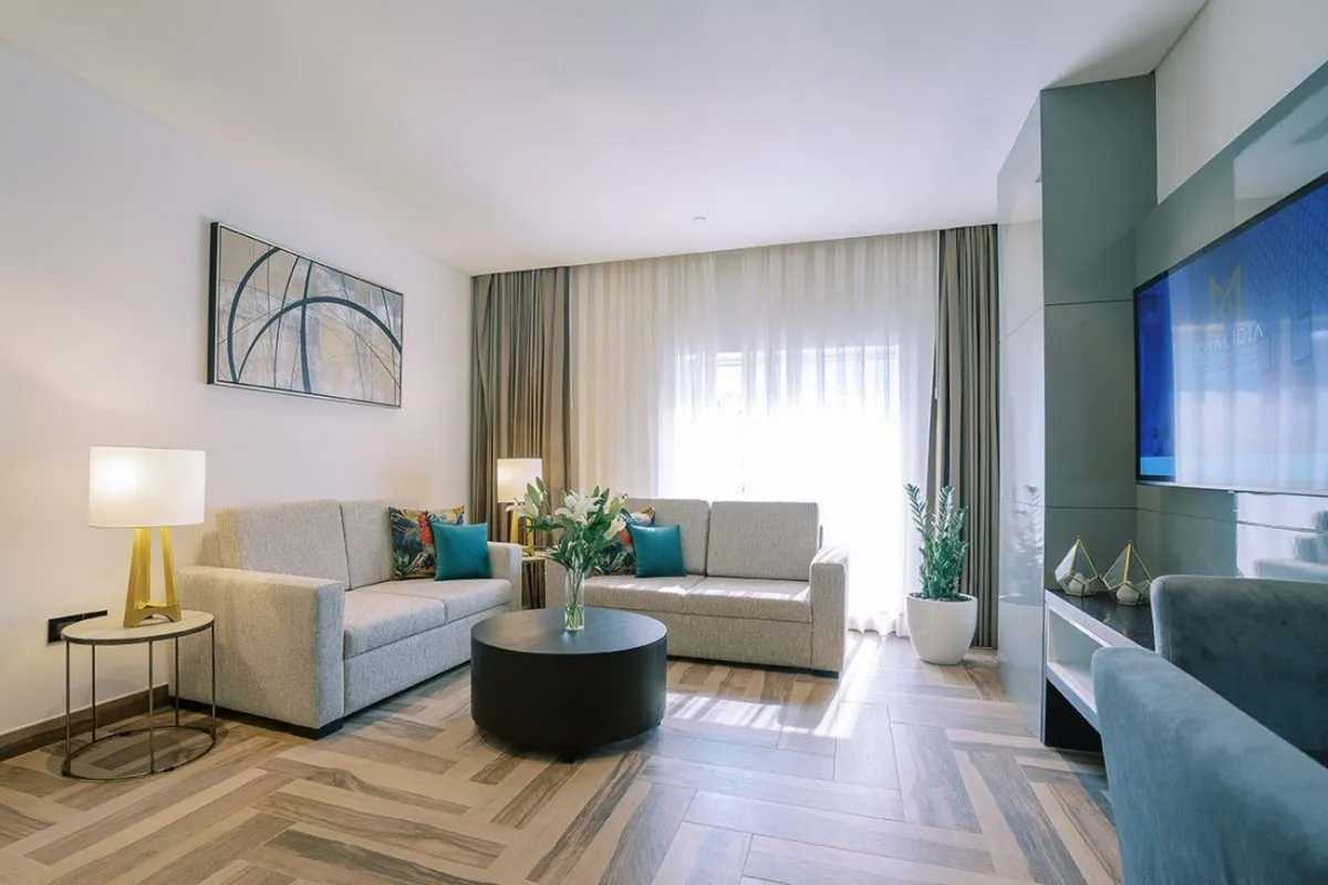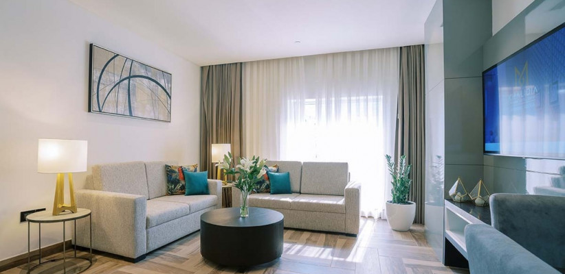 70 м2, с видом на город, спальня с двуспальной кроватью размера king-size, диван-кровать, отдельная гостиная, оборудованная мини-кухня. Максимальное количество гостей: 3 или 4.Executive Suite