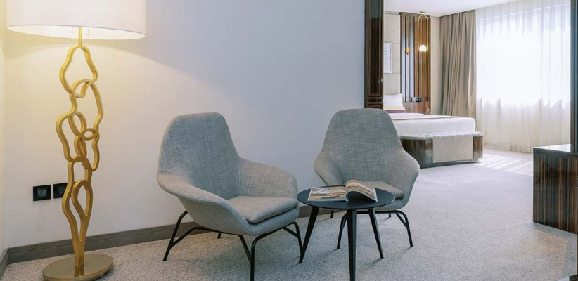 36 м2, спальня с двуспальной кроватью размера king-size или с двумя односпальными кроватями, два кресла с кофейным столиком. Максимальное количество гостей: 2 или 3.Premium Room
