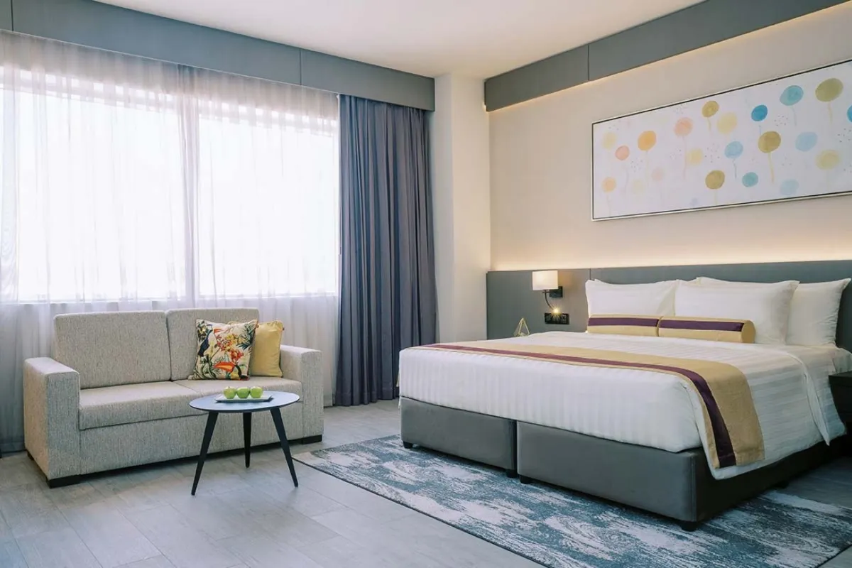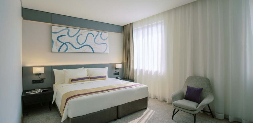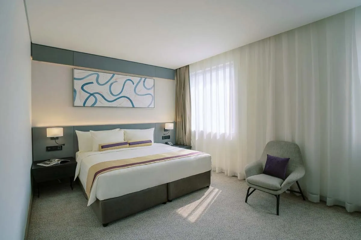 Отель предлагает просторные и светлые номера с элегантным интерьером, оснащенные всем необходимым для комфортного проживания, а с панорамных окон от потолка до пола туристы смогут наблюдать пейзажи города.
