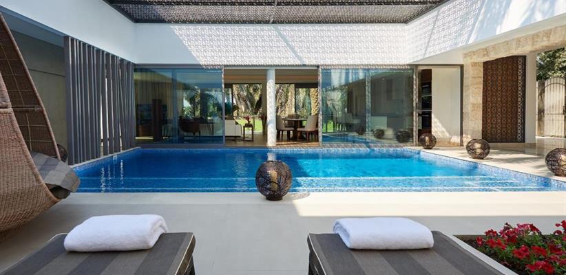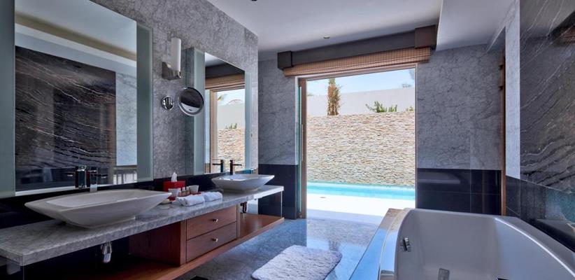 1-Bedroom Villa With Private Pool – 198 кв. м, на вилле есть двуспальная кровать, гостиная, столовая, бассейн, терраса, барбекю, диван, кондиционер, телевизор, мини-бар, телефон и собственная ванная комната с душем и феном.