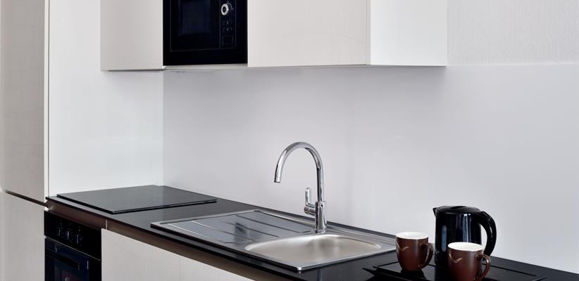 Deluxe Rooms площадью 38 кв. м., размещением 2+1 чел., с кроватью размера king-size или двумя односпальными кроватями,ванная с душем, полностью оборудованная кухня (плита, духовка, микроволновая печь и стиральная машина), принадлежности для чая и кофе.