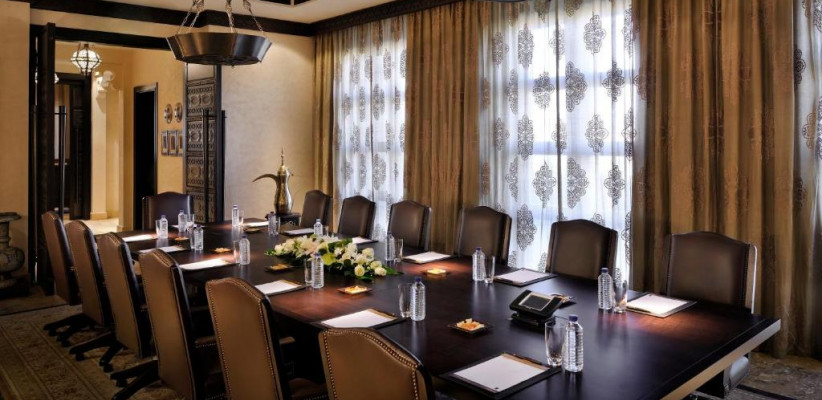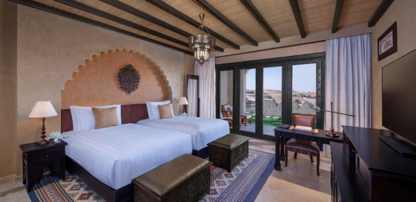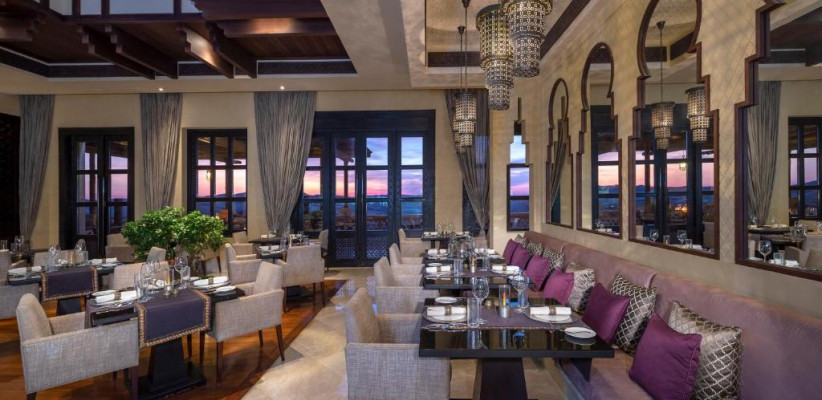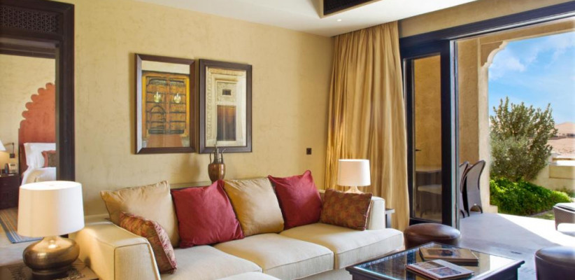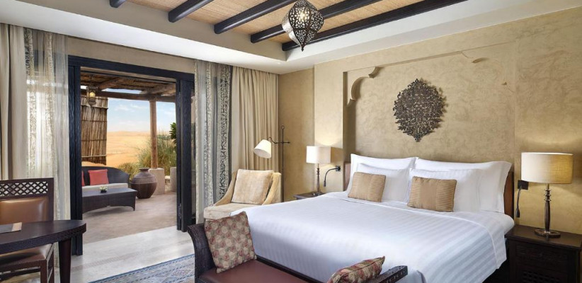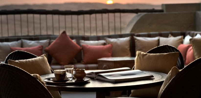 - Рестораны и бары: ресторан Al Waha предлагает блюда восточной и международной кухни (шведский стол). Ресторан-гриль Suhail где можно отведать изысканные блюда из австралийской говядины и насладиться изысканными винами. Бар-ресторан Ghadeer в дневное время предлагает легкие закуски и сэндвичи, в вечернее время работает как ресторан, где можно отведать блюда средиземноморской кухни и покурить кальян. В Лобби бар Al Liwan можно выпить настоящий арабский кофе, побаловать себя эксклюзивными видами чая, попробовать знаменитый имбирный чай с молоком и арабские сладости. За дополнительную плату отель может организовать на закате романтический ужин среди золотых песчаных дюн с индивидуальным обслуживанием. Ужин состоит из 4 блюд и приветственного коктейля. Ориентировочная стоимость 165$ с человека. Не проводиться в период с 23.12-01.01. С октября по март отель устраивает тематические ужины в бедуинском стиле, в специально организованном расторане среди барханов – Al Falaj где гости могут по достоинству оценить знаменитые арабские блюда. Так же отель может организовать индивидуально барбекю ужин за доп. плату для гостей проживающих на виллах. По выбору гостей предлагается арабский или интернациональный вариант блюд. Стоимость от 145$ на человека.