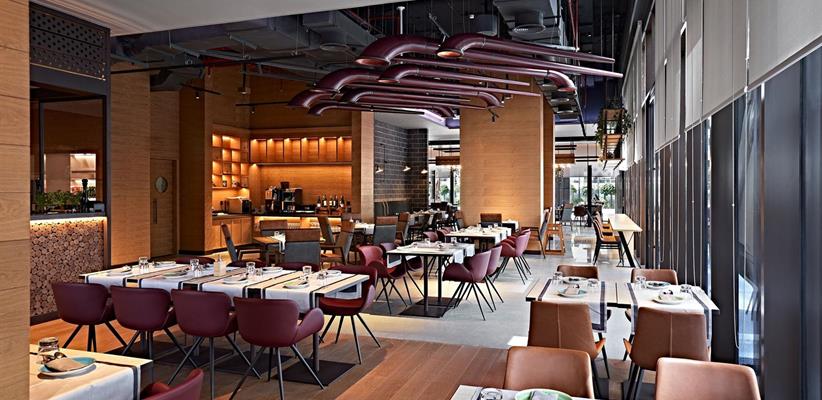 На территории отеля работает ресторан Alphorn с интернациональной кухней, бар Allegra, кальянная, лаунж-бар. В отеле предлагаются частные ужины, круглосуточное обслуживание номеров.