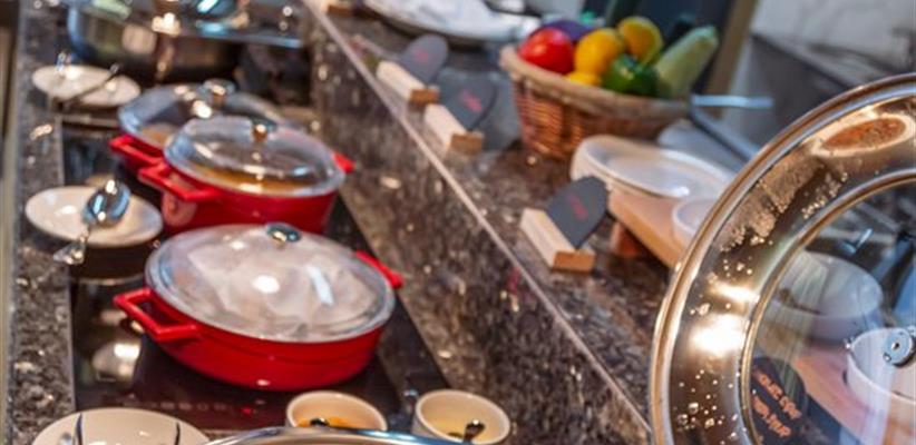 Пока происходит регистрация, можно комфортно отдохнуть в лобби баре или насладиться вкусной едой в собственном ресторане отеля. Богатая винная карта позволит подобрать к вашему блюду идеально подходящее вино. Обслуживание осуществляется по системе "шведский стол".