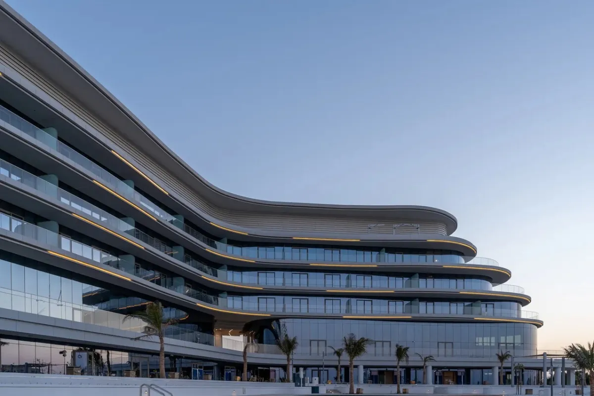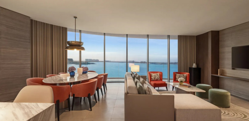 - Размещение на берегу острова Al Marjan Island, с видом на море.