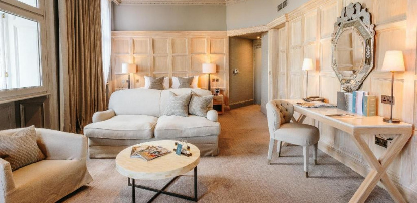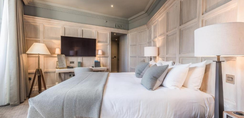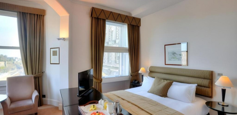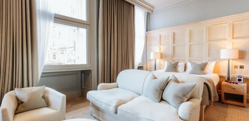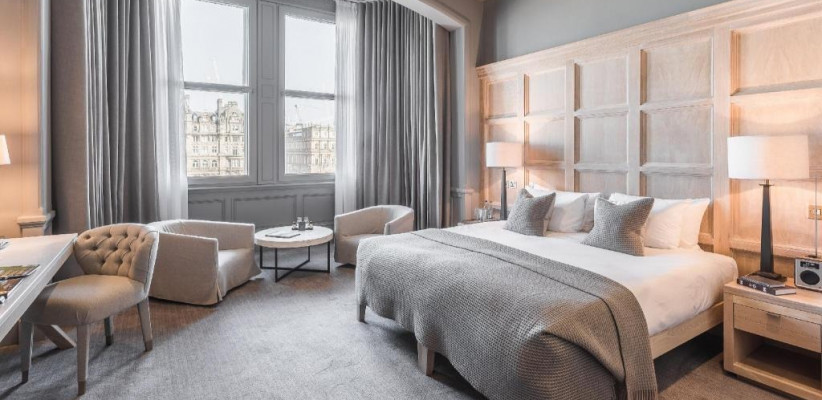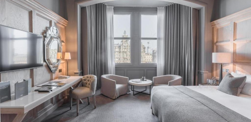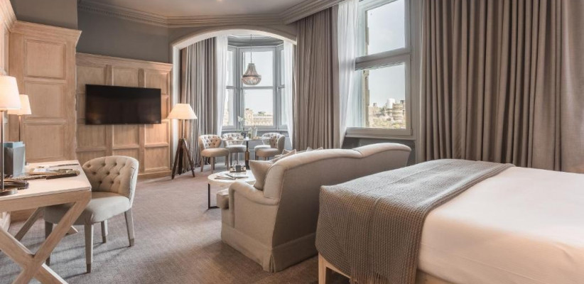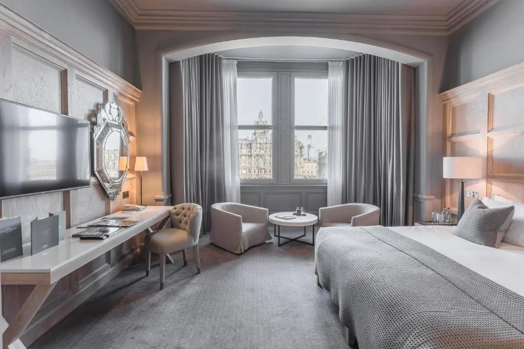 Гости могут наслаждаться панорамными видами на старинные крыши города, Калтон-Хилл и Эдинбургский замок прямо из окон номеров, а также удобно добираться пешком до главных достопримечательностей, театров, музеев и торговых улиц. Отель сохранил исторические элементы — грандиозную мраморную лестницу, резные панели и витражи, при этом предлагая современные удобства.