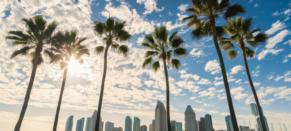 Сан-Диего — прибрежный город на юго-западе США, расположенный в штате Калифорния. Он известен мягким климатом, просторными пляжами и расслабленной атмосферой. Город сочетает современную застройку, морское наследие и близость к природным паркам. Сан-Диего популярен как место семейного отдыха, серфинга и круглогодичного туризма.