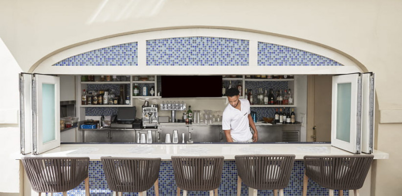 - The Blvd – ресторан американской кухни с открытой террасой. Расположен в крыле Wilshire Wing, вид на бульвар Уилшир и улицу Родео-драйв