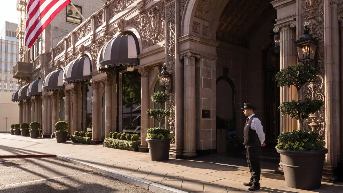 79-91 м2, вид на улицу Родео-драйв, прихожая, спальня (двуспальная кровать) с гостиной зоной, ванная комната, гостевой санузел. Расположены со 2 по 8 этаж крыла Wilshire WingTwo-Bedroom Wilshire Suite