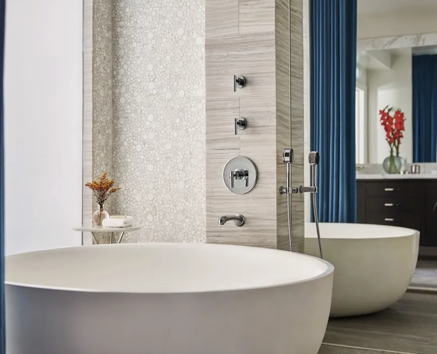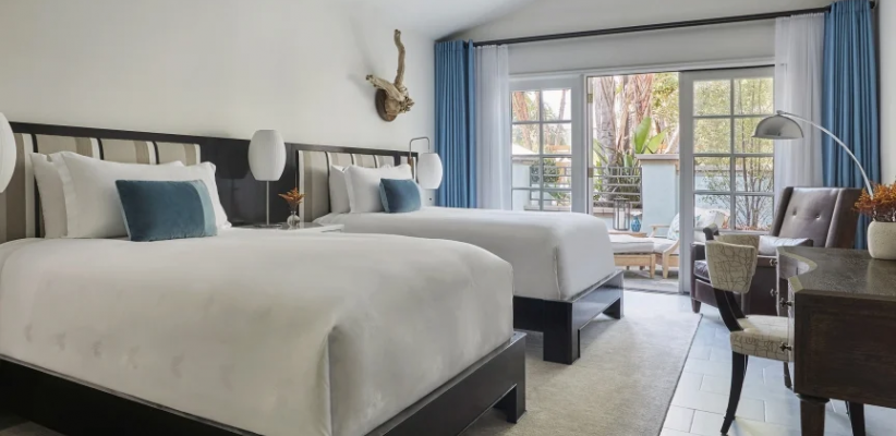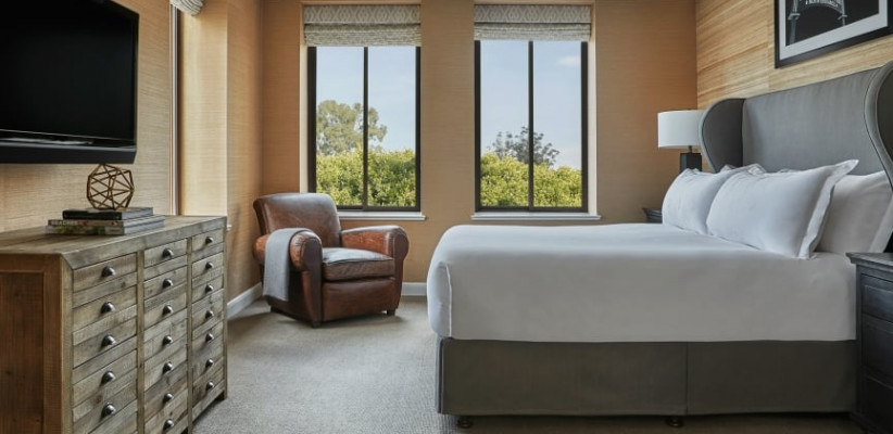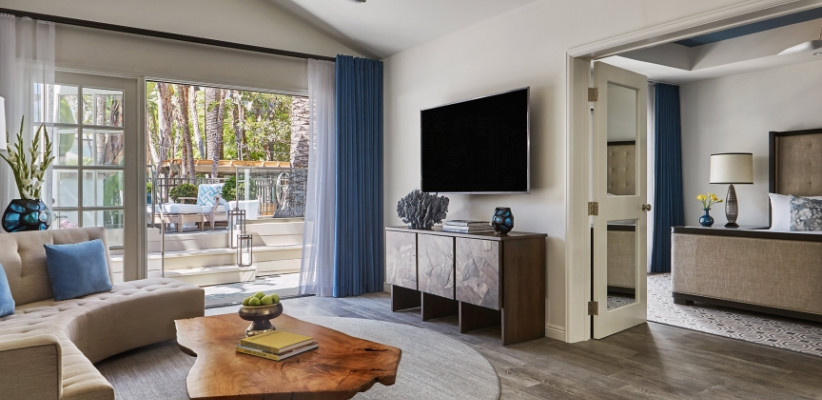 232 м2, патио с зоной отдыха и видом на сад, 3 спальни с ванными комнатами, гостиная с обеденной зоной, гостевая ванная комната. Интерьеры выполнены компанией Robb Report Home & Style, расположен в крыле КалифорнияBi-Level Bungalow Suite