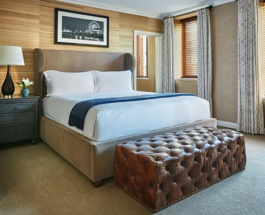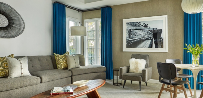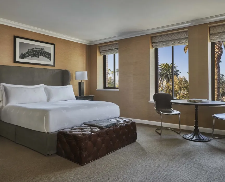 73 м2, вид на океан, двуспальная кровать, гостиная с обеденной зоной и диваном. Оформлен известным дизайнером из Лос-Анджелеса Линдой Мюррей, расположен в историческом здании PalisadesSignature Palisades Suite
