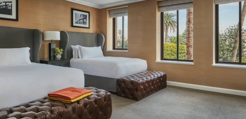 Отель Fairmont Miramar Hotel & Bungalows 5* расположен на вершине прибрежных скал в Санта-Монике и открывает панорамный вид на океанский простор. Когда-то здесь находился частный особняк сенатора Джона Джоунса – основателя города Санта-Моника. В гости к сенатору часто заезжали звезды Голливуда, а в 20-х годах XX века, с постройкой нового крыла, многие из них получили возможность постоянно жить в этом роскошном поместье. Более четырех лет здесь постоянно жила Грета Гарбо, а в отдельных бунгало отдыхали такие знаменитости как Мэрилин Монро, Элеонора Рузвельт, Джон Кеннеди, бывали здесь Билл Клинтон, Барбара Стрейзенд и Стивен Спилберг. Номера отеля расположены в двух корпусах – недавно обновленном десятиэтажном корпусе Ocean Tower, с верхних этажей которого открывается панорама на океан и в историческом корпусе Palisades Wing, с уютными номерами в традиционном стиле. Можно разместиться и в одном из роскошных бунгало, расположенного в самой чаще тропического парка с экзотическими цветами и живописными водопадами.