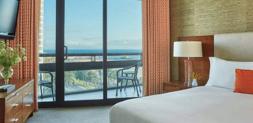 26 м2, балкон с видом на океан, Малибу или пирс Санта-Моники, двуспальная кровать или две односпальные кровати. Расположены в здании Ocean TowerPremier Ocean View Room
