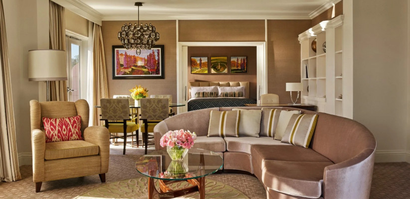57 м2, с видом на сад или город, спальня с двуспальной кроватью размера king-size, гостиная зона, рабочее место.Junior Beverly Hills Suite