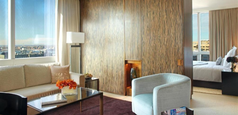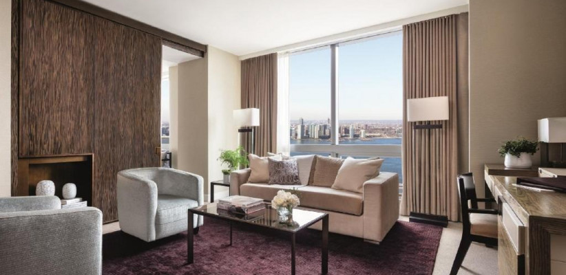 104 м², 2 спальни, 2 двуспальные кровати, 2 ванные спальни, потрясающий вид на skyline Манхэттена или реку, максимальное размещение: 5 гостей.Hudson Square 1 Bedroom Suite