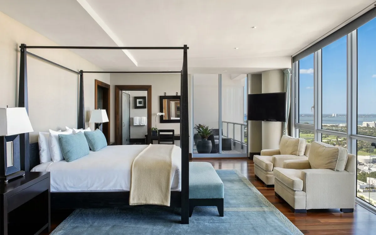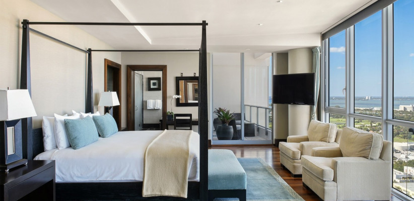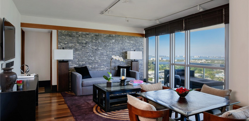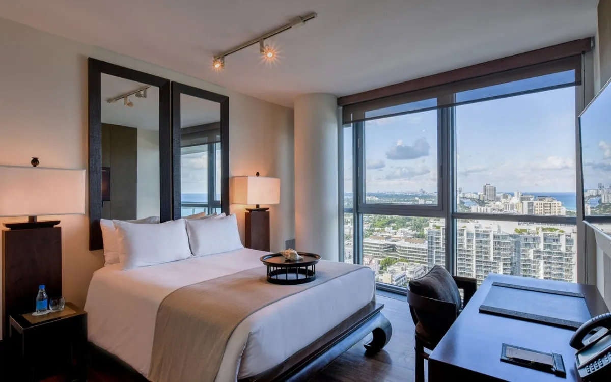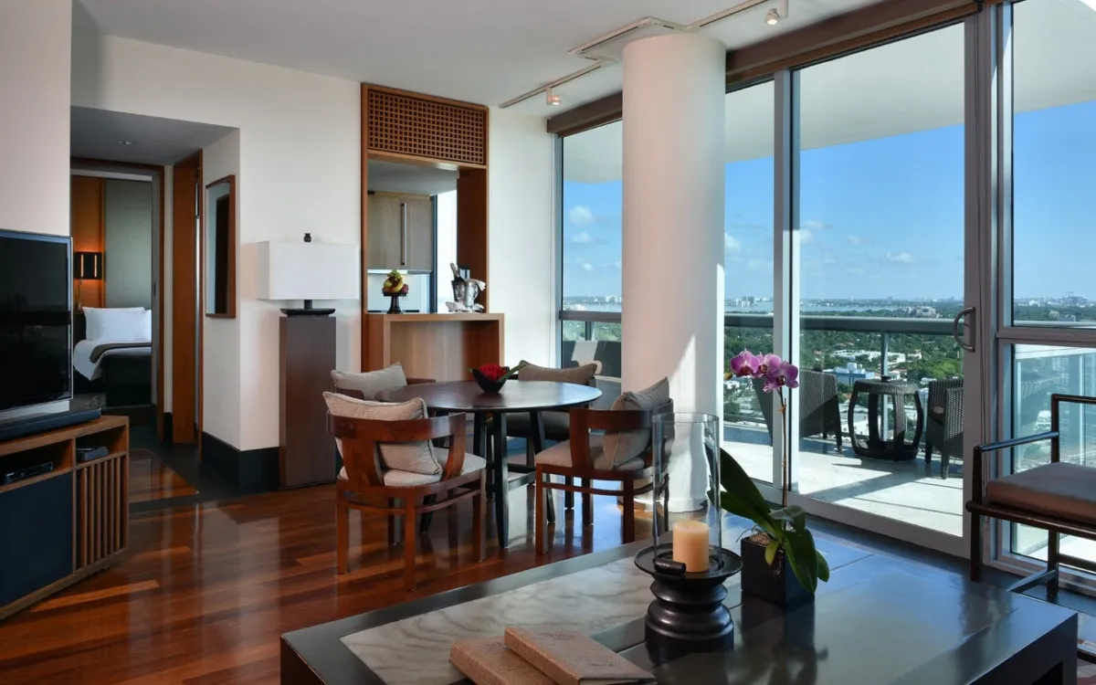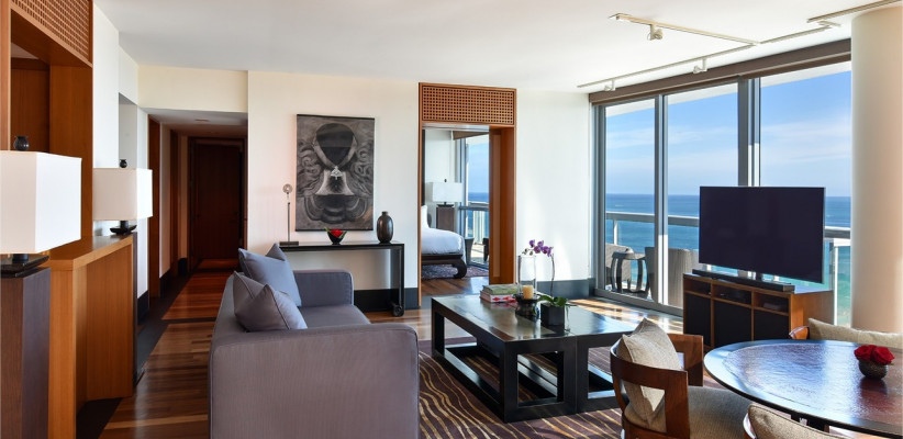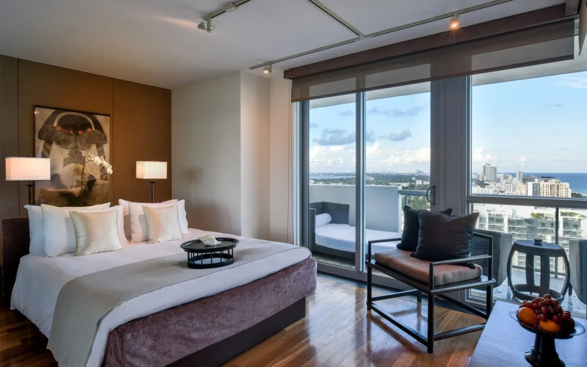 The Setai, Miami Beach – премиальный отель, объединяющий восточную утонченность и архитектуру Art Deco с высоким уровнем сервиса. Размещение представлено двумя категориями: Art Deco Suites в историческом здании 1930-х годов с характерной архитектурой и интерьером в стиле ретро-гламур, и Ocean Suites в современной части отеля с панорамными видами на Атлантический океан. Базовые номера просторные и полностью оборудованы.