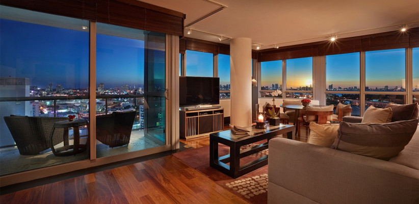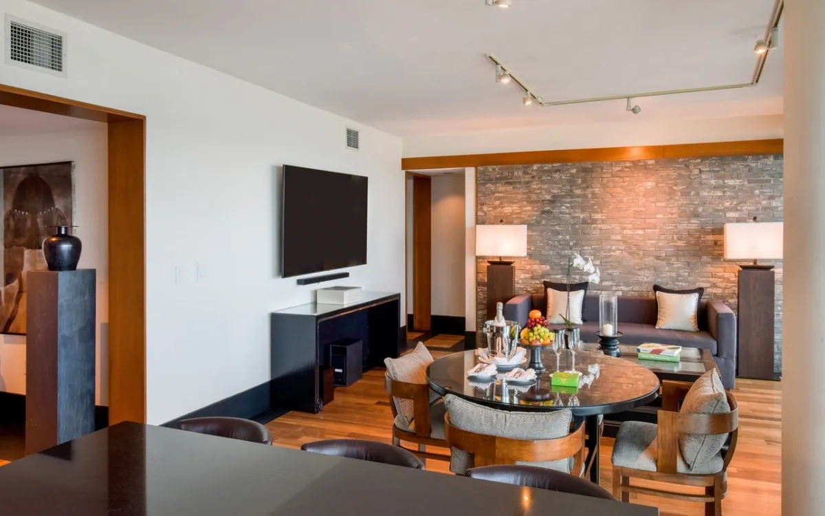 122-261 м2, балкон с панорамным видом, спальня с двуспальной кроватью размера king-size, гостиная, обеденная зона, оборудованная кухня, отдельное рабочее место.The Entertainment Suite