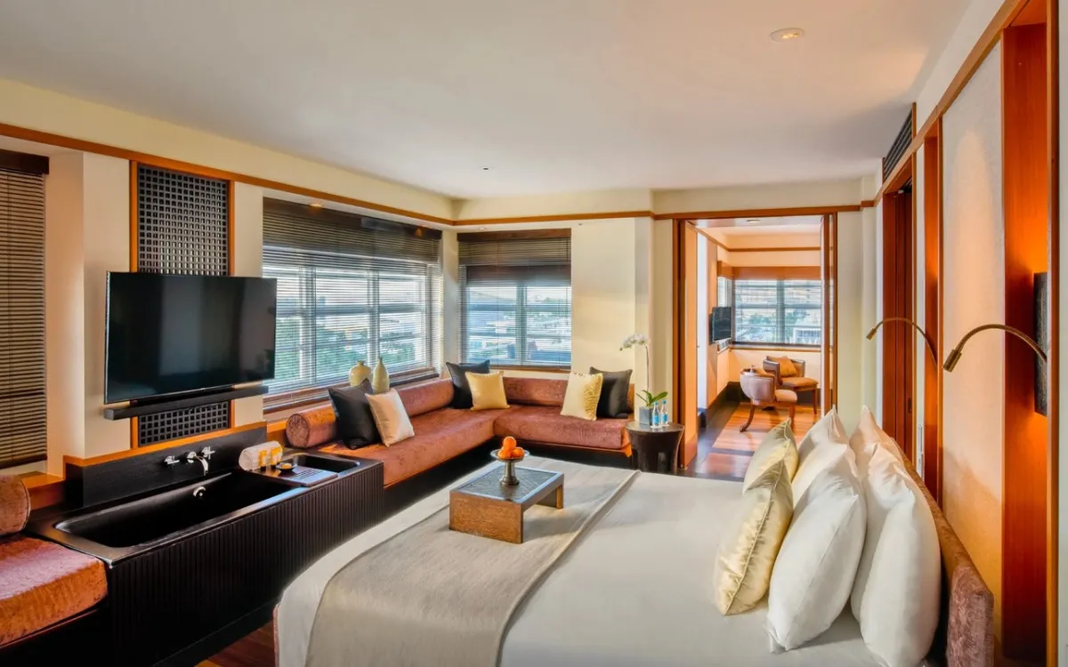 50 м2, спальня с двуспальной кроватью размера king-size, две софы, кофейный столик, рабочее место, выход к бассейну, 2 этаж.Studio Suites