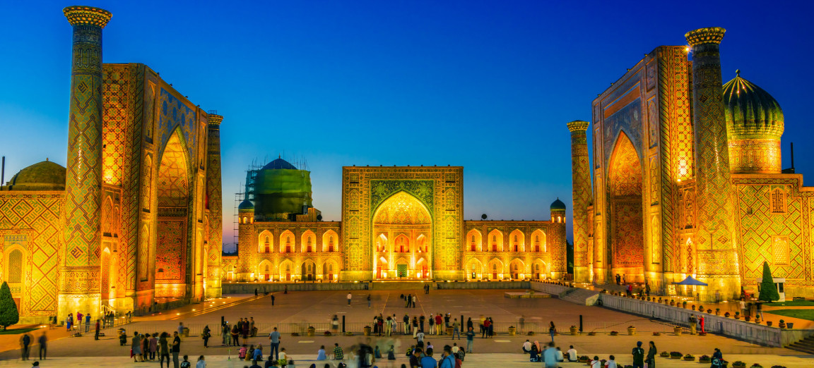 Центральная достопримечательность города – архитектурный комплекс на площади Регистан, которая считается одной из самых живописных площадей планеты. Ее украшают три медресе – образцы традиционной среднеазиатской архитектуры с узорчатой глазурованной облицовкой. Самое древнее строение – медресе Улугбека, построенное в первой четверти XV века. Второе строение – Тилля-Кари, «золотое медресе». Самое молодое здание из триады – Шер-Дор, или «медресе со львами». Его фасад покрывает искусная мозаика. В темное время суток медресе подсвечивают яркими красками.
