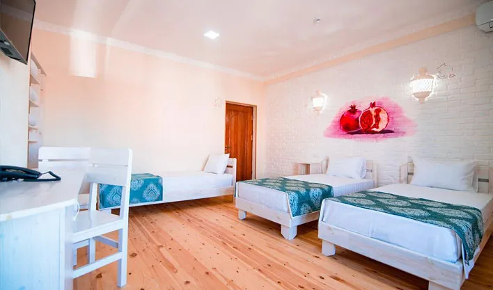 В отеле есть ресторан, где можно попробовать блюда узбекской и европейской кухни, а на 3-м этаже расположена терраса с видом на Старый город.