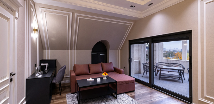47 м2, двуспальная кровать, доп. кровать, гостиная. Максимальное размещение: 3Terrace Suite