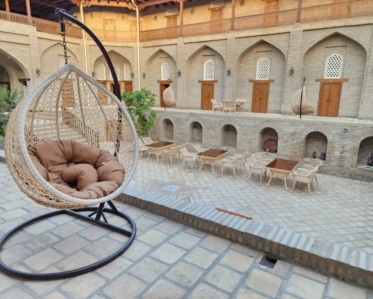 Гостям предлагаются номера различных типов с кондиционером и всеми необходимыми удобствами. Каждый день сервируется завтрак‑шведский стол, а в ресторане можно попробовать ужин с традиционными узбекскими блюдами. Персонал помогает организовать экскурсии и знакомство с историей Бухары, а центральное расположение делает отель отличной базой для прогулок по старому городу.