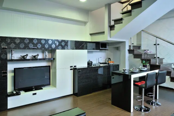 125 м2, 2-уровневые апартаменты: двуспальная кровать, гостиная, кухня. Максимальное размещение: до 3Апартаменты Duplex Suite