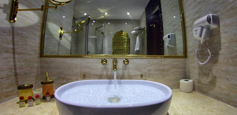 Отличительная особенность – удачное сочетание восточной роскоши и европейского комфорта: декоративное оформление, элементы восточного интерьера, приятная атмосфера и внимание к деталям.