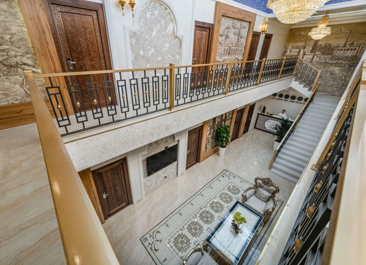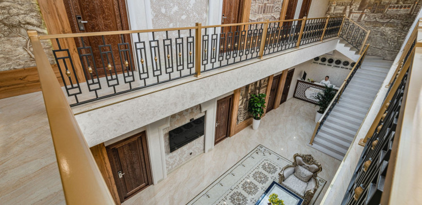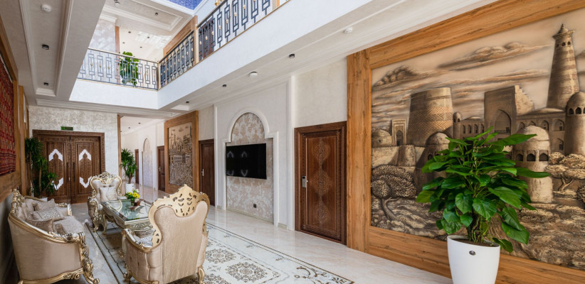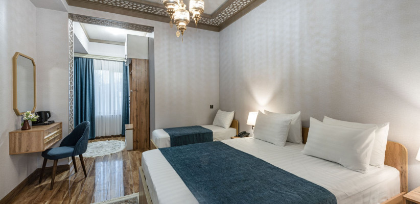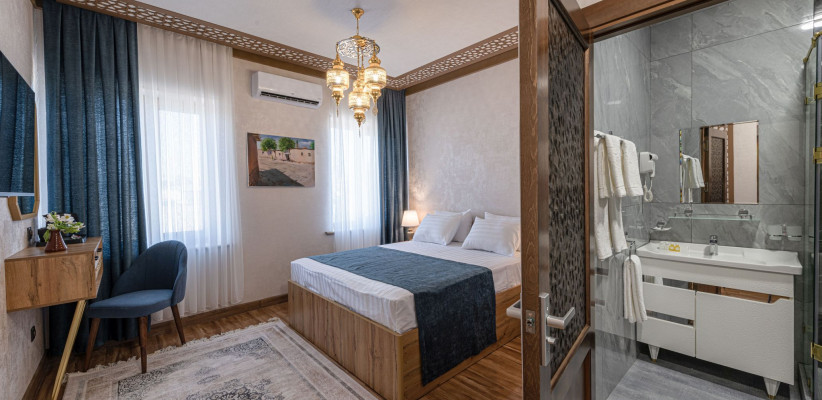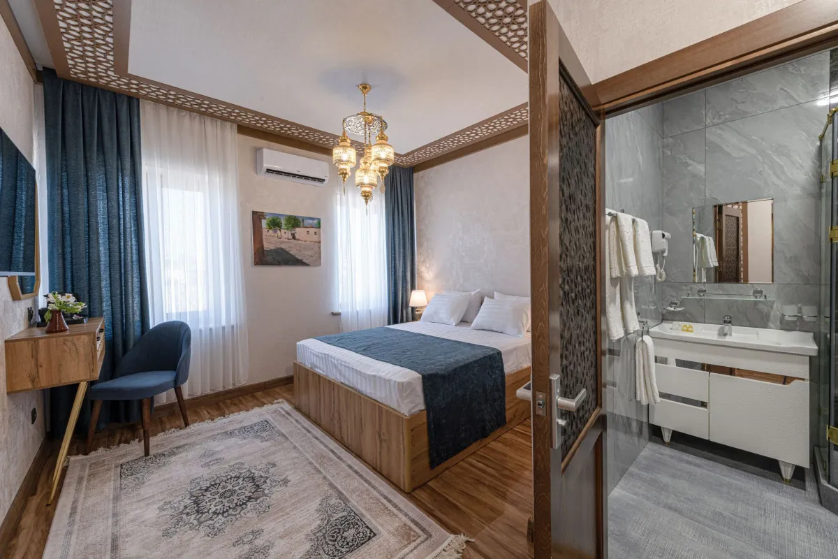 Гости могут насладиться истинным узбекским гостеприимством, сочетающим традиции и современный сервис высокого качества. В отеле представлено 20 элегантных и комфортабельных номеров, оформленных в традиционном узбекском стиле с современными удобствами.