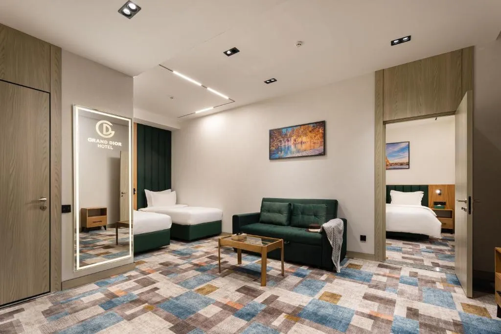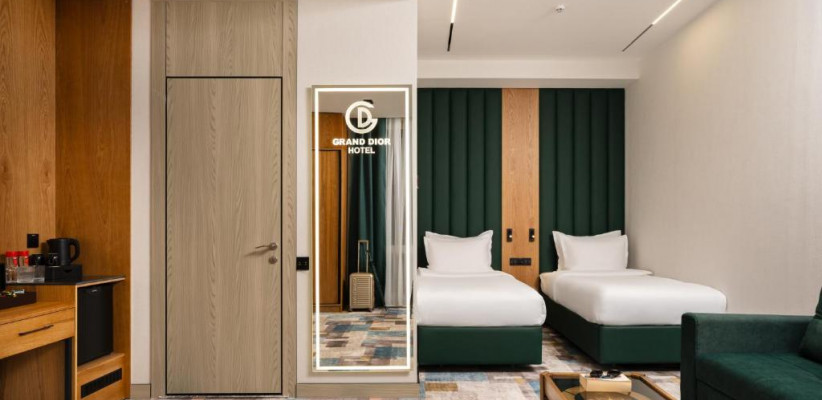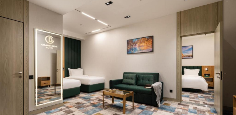 Grand Dior Hotel – новый 4-звёздочный отель в Ташкенте, где современная элегантность сочетается с узбекским гостеприимством. Отель расположен в сердце города и подойдёт для деловых поездок, отдыха и семейных путешествий. Гостям предлагаются просторные номера и люксы, ресторан на крыше с панорамным видом на Ташкент, а также персонализированный сервис. Рядом с отелем находятся станция метро Новза, площадь Амира Темура, Парк Дружбы, Чорсу базар и другие городские достопримечательности.
