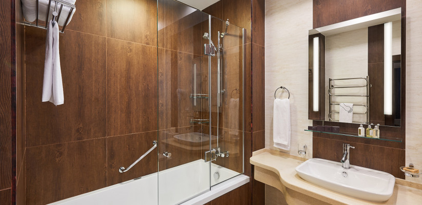 в номере две односпальные кровати, рабочий стол, кофейный столик и два кресла.Полулюкс