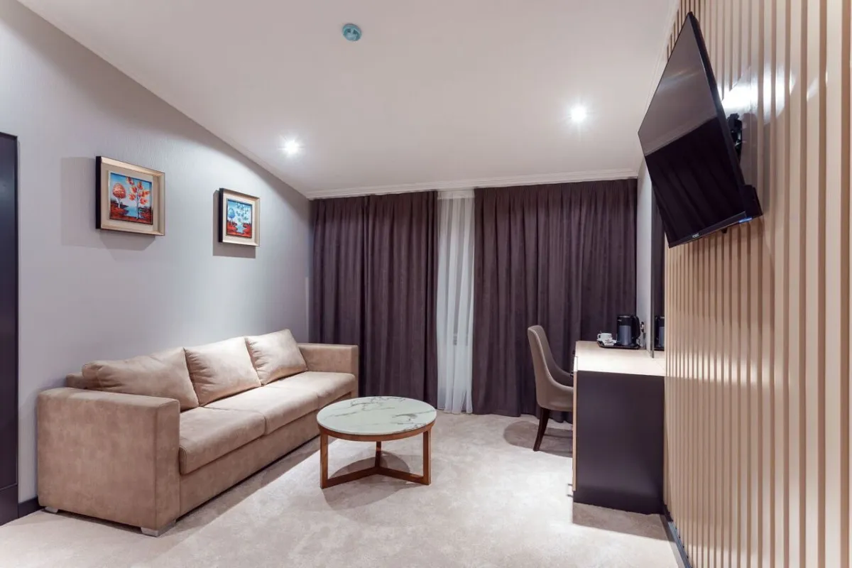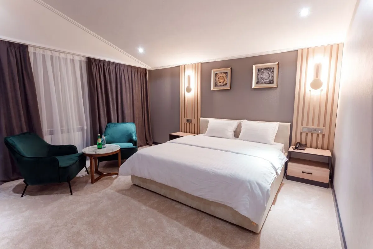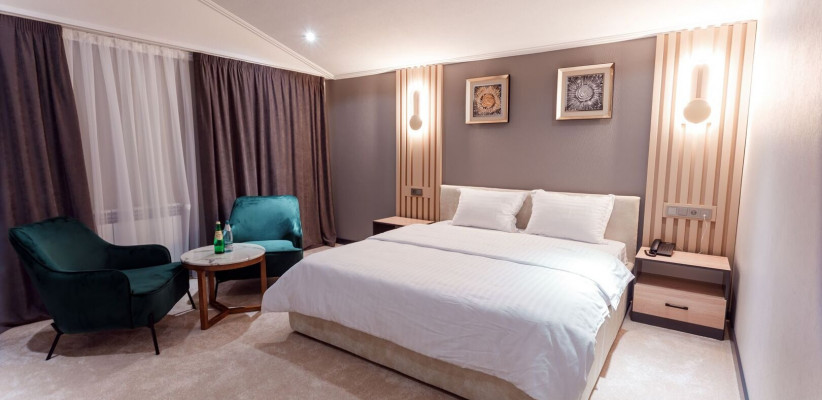 Номерной фонд отеля составляет 55 номера с уникальной тематикой и интерьером.Deluxe Panorama