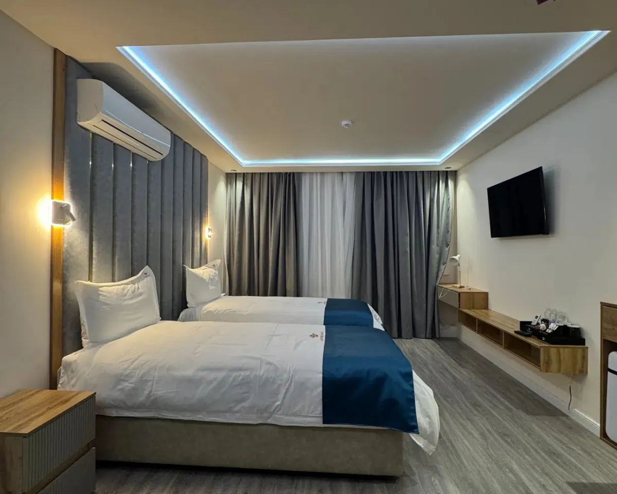 42 м2, две комнаты, большая двуспальная кровать и дополнительные спальные места, количество гостей: до 5Deluxe Twin/ Номер повышенной комфортности с двумя отдельными кроватями