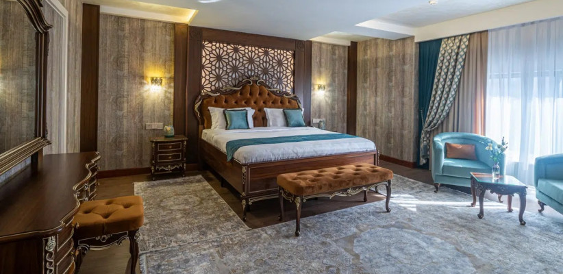 32 м2, номера расположены на 2–5 этажах, с видом на центр города, две отдельные кровати или одна двуспальная, количество гостей: до 3King Suite/ Королевский люкс