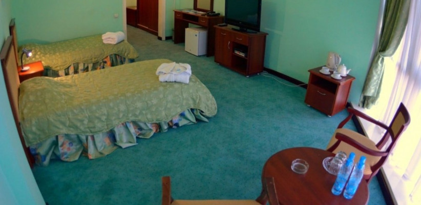 две односпальные или двуспальная кровать, рабочая зона. Количество гостей: 2.