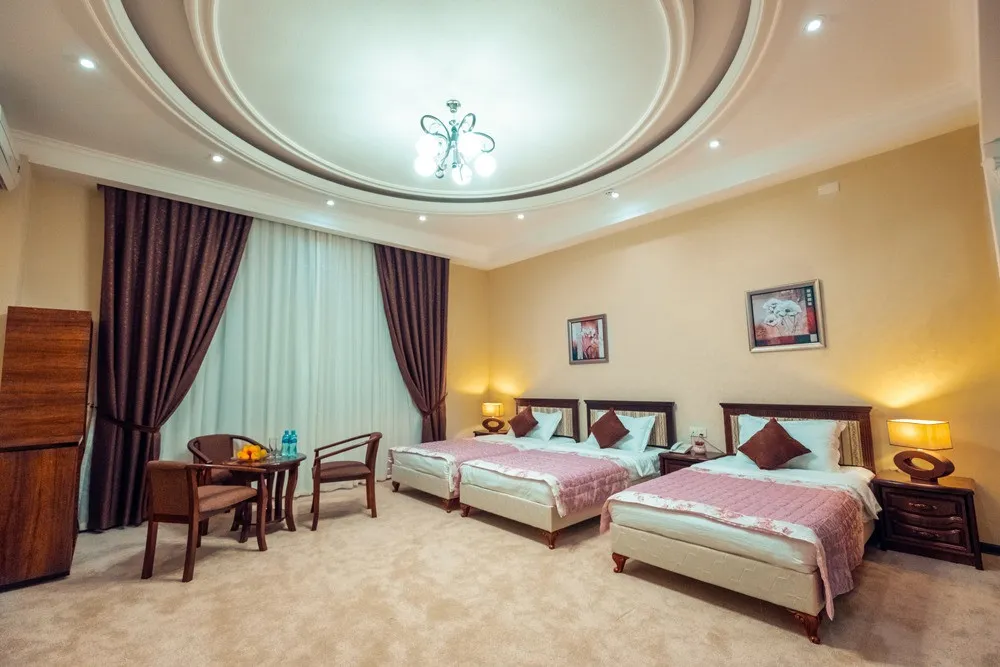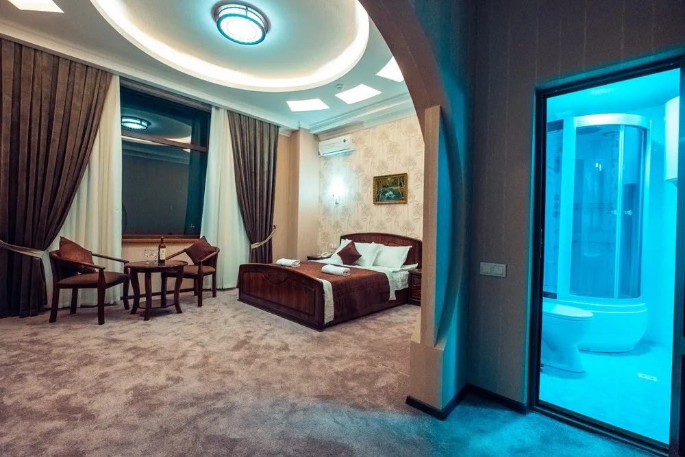 Meros Boutique Hotel расположен в тихом и удобном районе Самарканда, недалеко от главных достопримечательностей, таких как площадь Регистан и мавзолей Гур-Эмир. От аэропорта до отеля всего около 15 минут езды, а железнодорожный вокзал находится примерно в 10-15 минутах, что делает его удобной базой для туристов, деловых поездок и семейного отдыха.