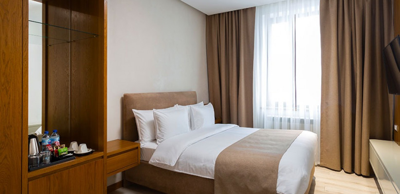Отель Moderno сочетает в себе домашний уют и современный европейский сервис. Moderno расположен в спокойном районе города (Яккасарайский р-н) и примерно в 10 минутах езды от аэропорта и вокзала. В шаговой доступности – уютные парки, культурный центр Human House и популярные рестораны города. Отель предлагает 45 светлых номеров с продуманным интерьером и всеми необходимыми удобствами для комфортного проживания.