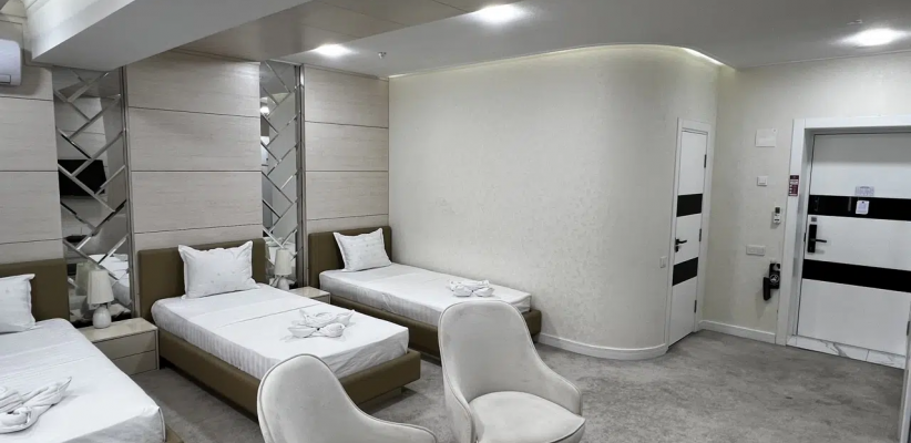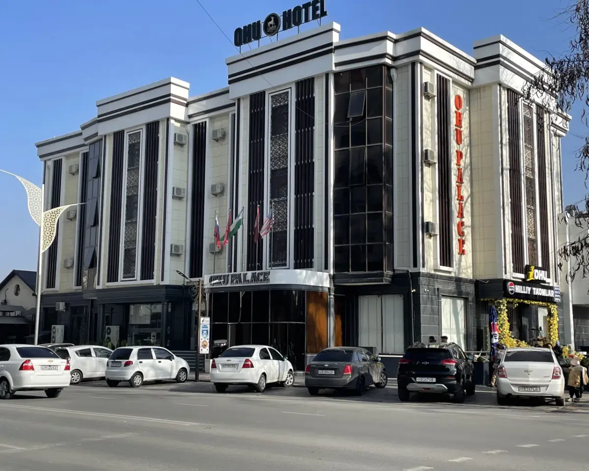 Ohu Palace Hotel — роскошный отель в Фергане, расположенный в живописном районе города. Отель сочетает изысканную архитектуру, современный дизайн и атмосферу уюта, предлагая гостям высокий уровень сервиса как для деловых поездок, так и для отдыха. Просторные номера оформлены с вниманием к деталям и оснащены современными удобствами, а большие окна и балконы открывают великолепные виды на окружающие ландшафты.