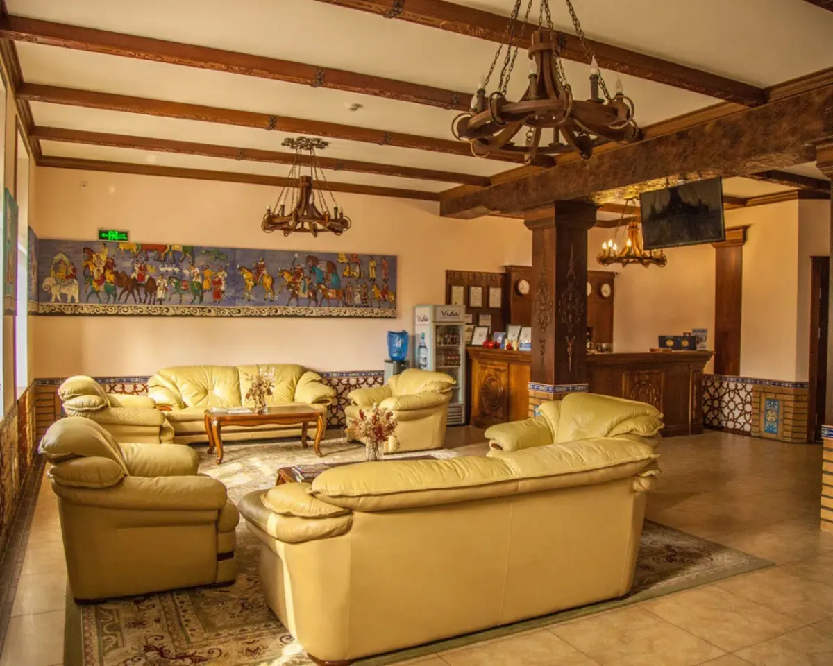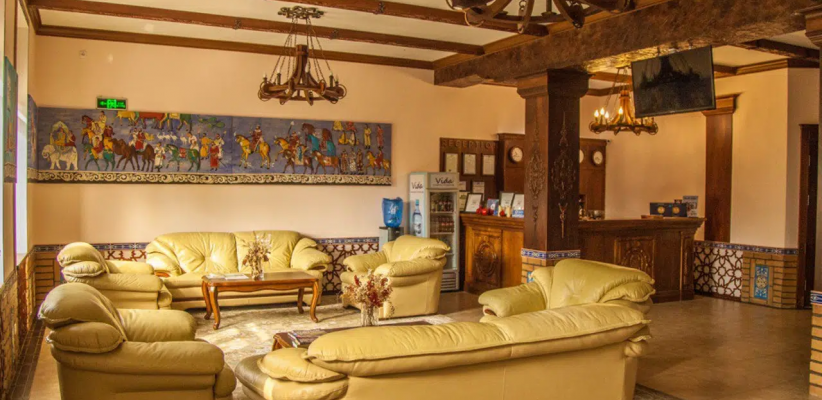 Ресторан отеля специализируется на узбекской кухне, а бар предлагает разнообразные напитки
