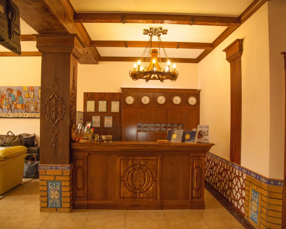 В отеле работает ресторан узбекской кухни и бар, предлагая блюда национальной гастрономии и возможность отдыха в непринужденной атмосфере. Доступны услуги трансфера из аэропорта, экскурсионное обслуживание и круглосуточная стойка регистрации, обеспечивая комфорт и безопасность пребывания.