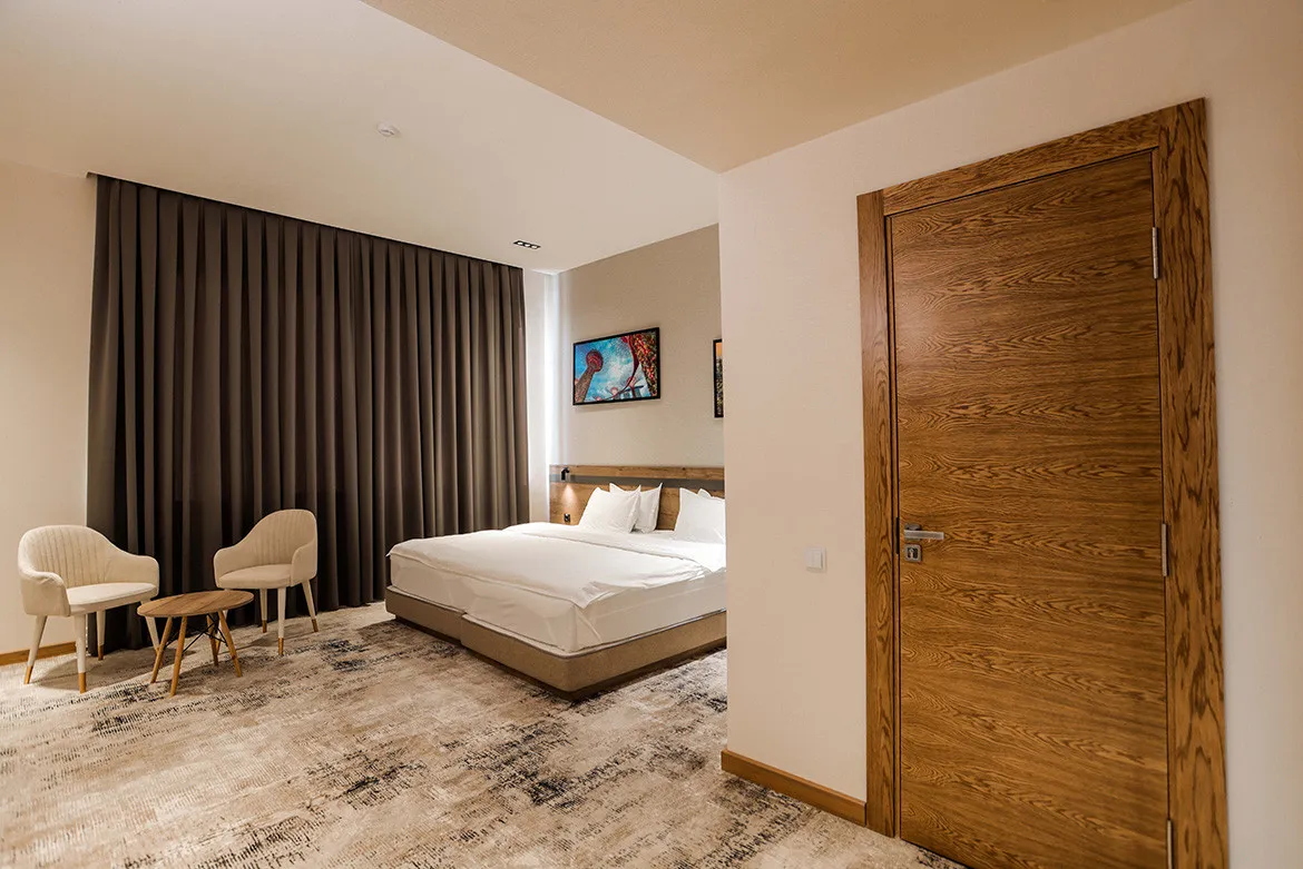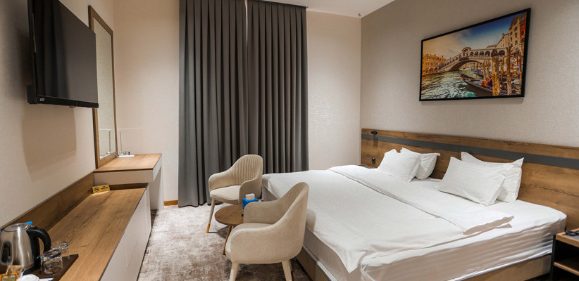 Номерной фонд включает комфортные комнаты с современным оснащением. Предусмотрены бесплатный Wi-Fi, телевидение, ежедневная уборка и все необходимые условия для спокойного отдыха и продуктивного пребывания.
