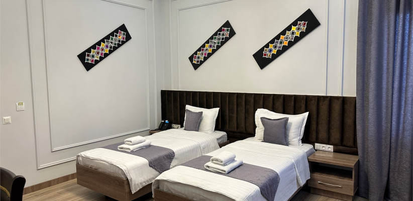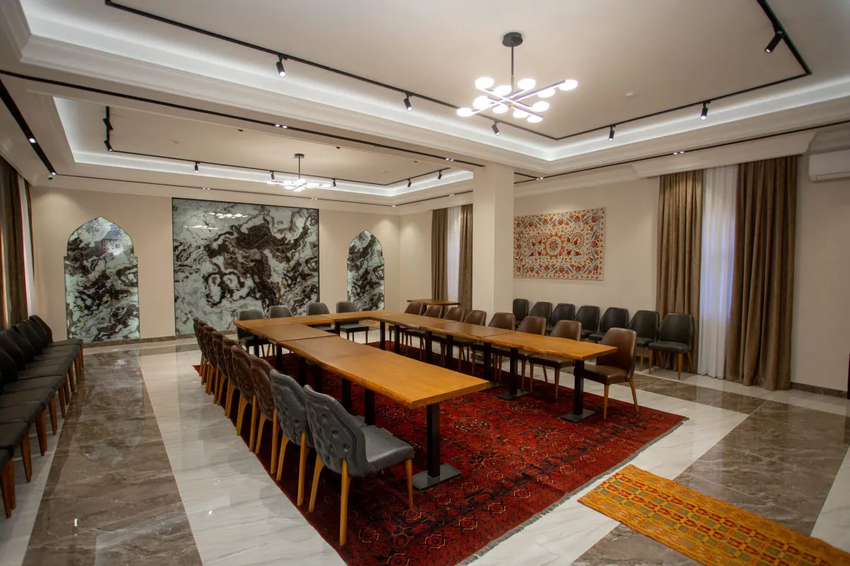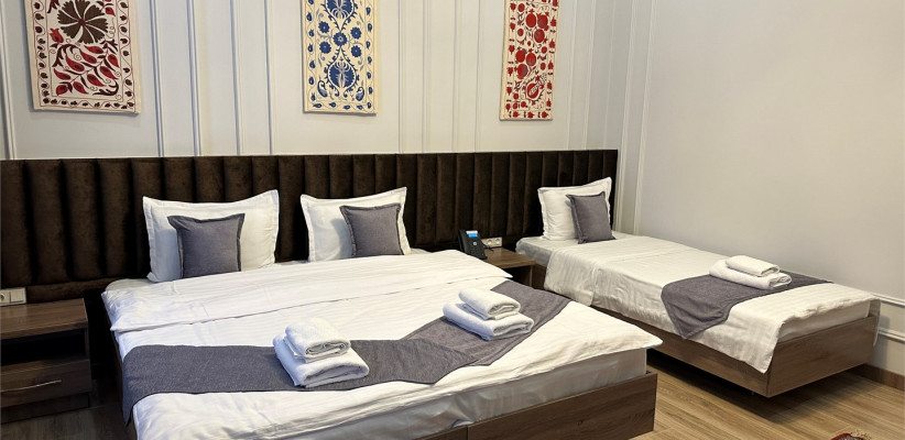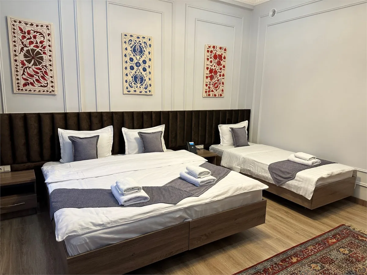 Обстановка отеля сочетает современный комфорт и близость к культурным сокровищам города, создавая гармоничное пространство для путешествий и отдыха в сердце Шелкового пути.