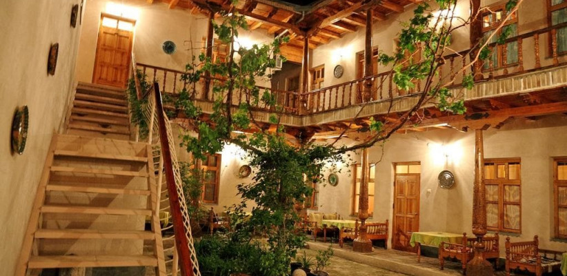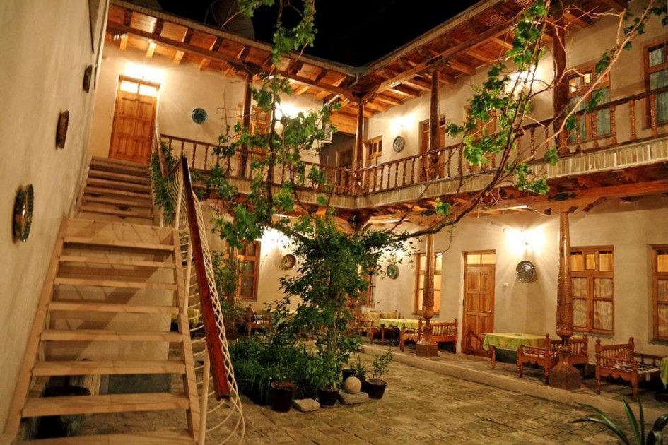 В оформлении использованы характерные для региона элементы – внутренний двор с виноградной лозой, резные деревянные двери и колонны. При этом в инфраструктуру органично интегрированы современные технические удобства, необходимые для комфортного проживания гостей.