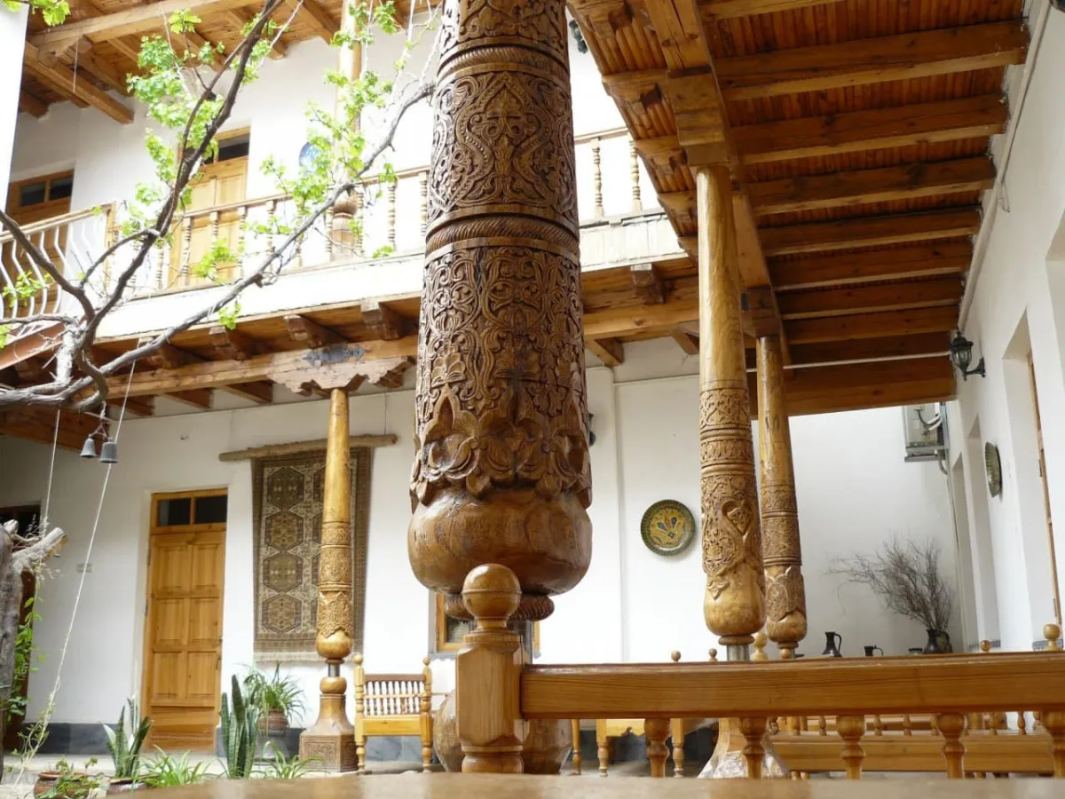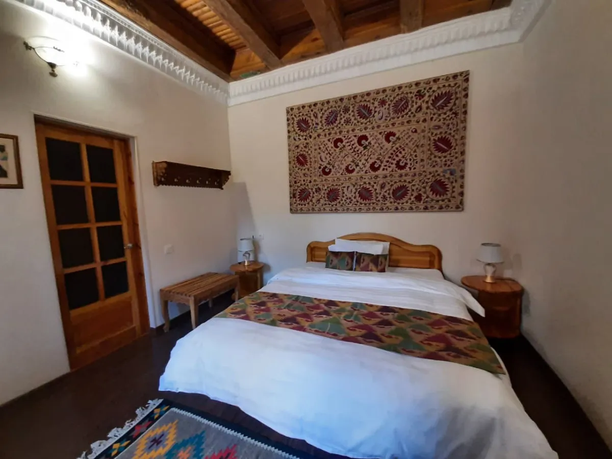Отель отличается атмосферой традиционного восточного гостеприимства и сочетает в себе элементы национального стиля с современным уровнем комфорта. Здание, ранее служившее домом бухарского еврейского купца, было реставрировано с соблюдением исторических архитектурных приемов, что позволило сохранить аутентичность пространства. Интерьеры отеля оформлены изделиями ручной работы: мебелью, текстилем и декоративными элементами, часть которых является антиквариатом, а часть создана по историческим образцам.