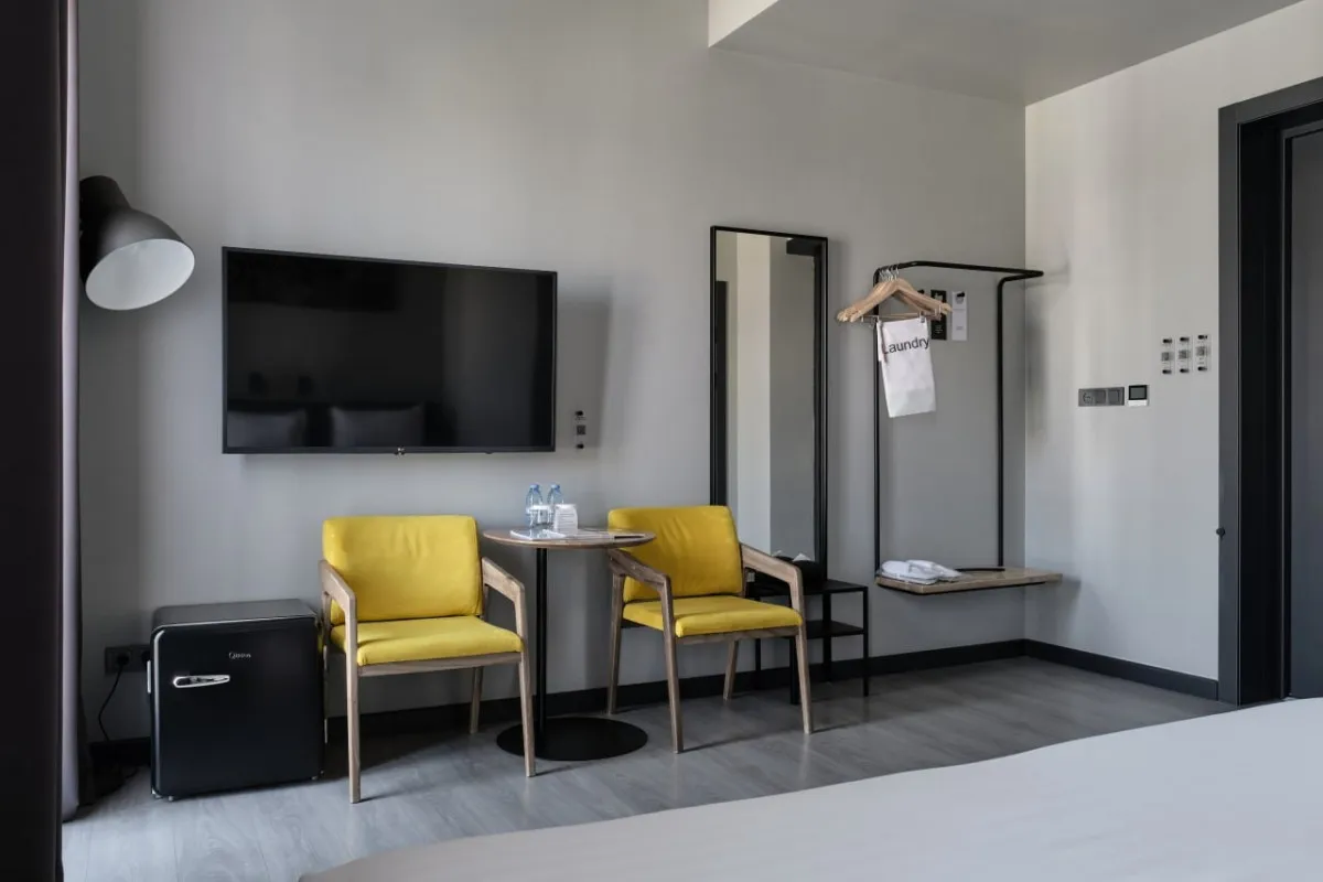 18 м2, с видом на город или во двор, спальня с двуспальной кроватью размера king-size или с двумя односпальными кроватями, кресло с кофейным столиком. Максимальное количество гостей: 2.Superior Room/ Супериор