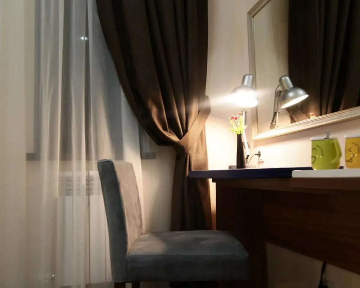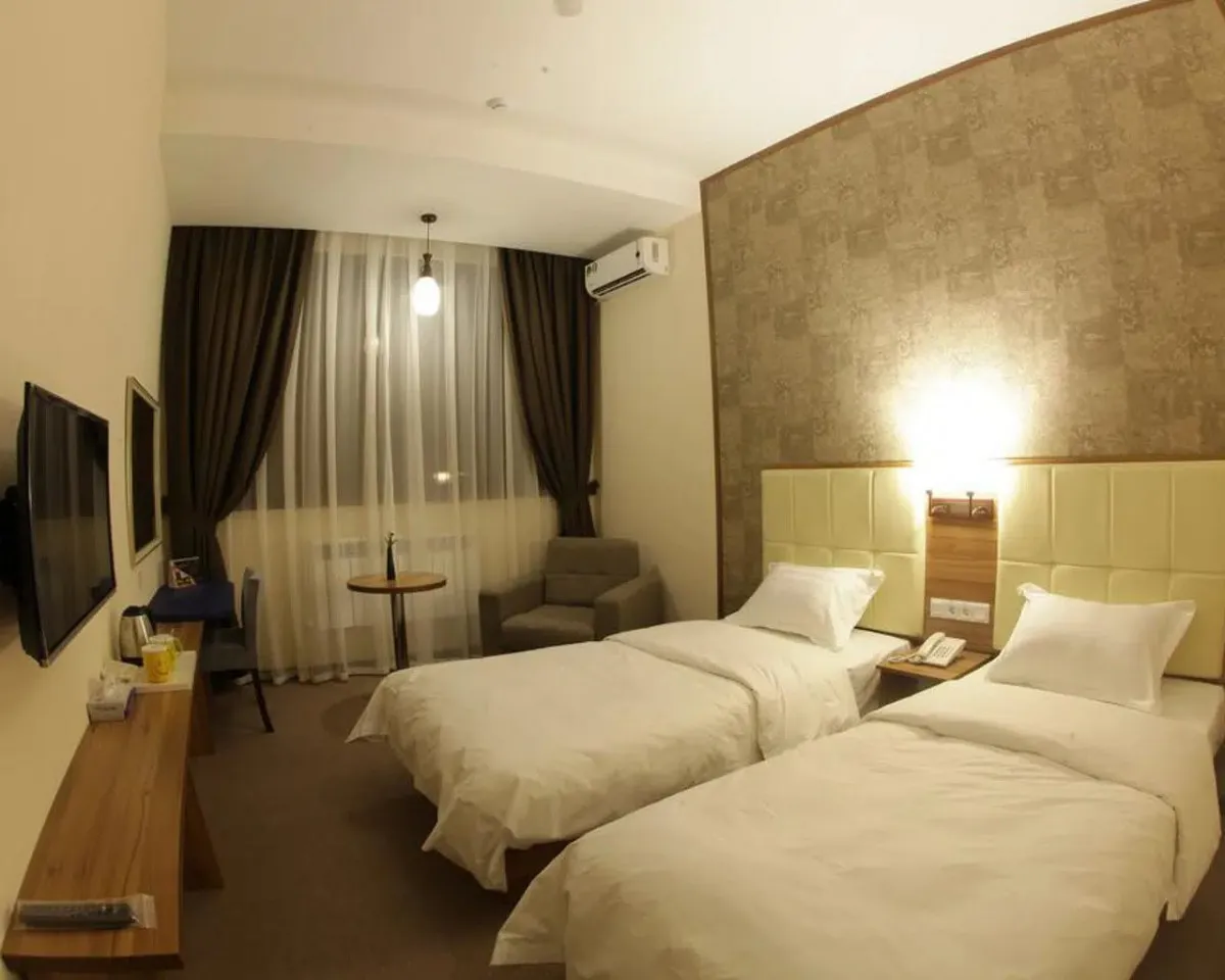 21 м2, с видом на город, спальня с двумя односпальными кроватями, кресло с кофейным столиком, рабочее место. Максимальное количество гостей: 3.Superior Room/ Супериор