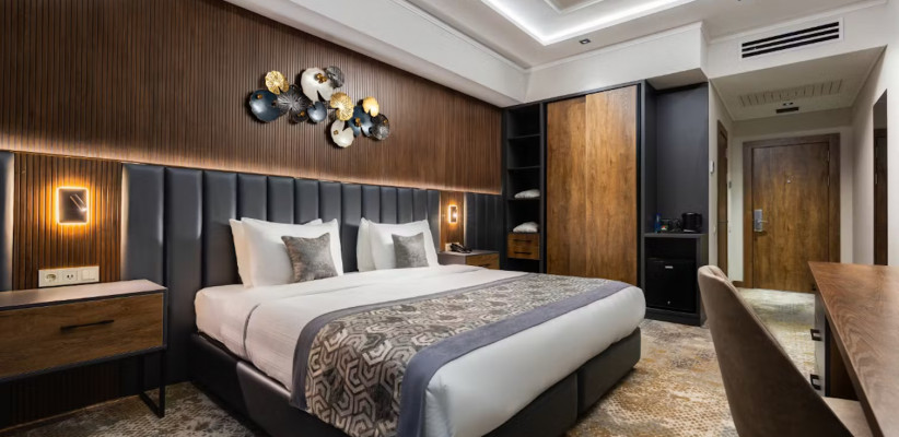 с шумоизоляцией и мягким освещением. В номере: кровать king-size или две односпальные, современная ванная комната с душем «дождевой ливень», затемняющие шторыSuperior Room