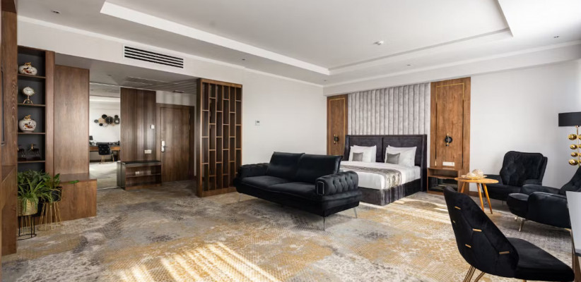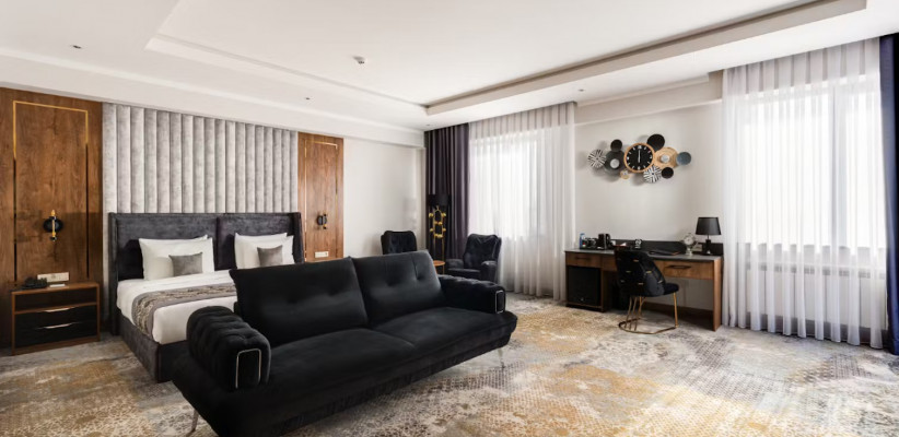просторный номер с улучшенным видом и балконом. В номере: кровать king-size, рабочий стол, халаты, гостиная зона с диваном-кроватьюSuite Room