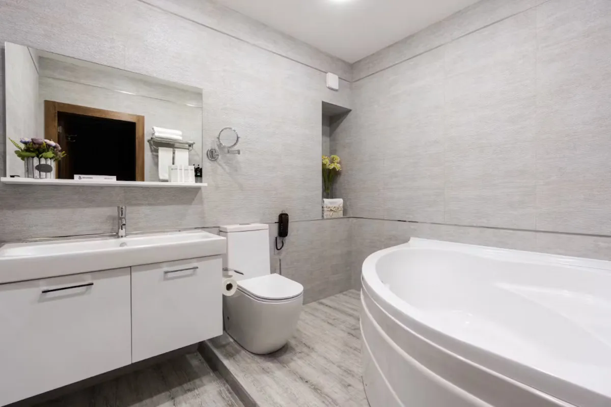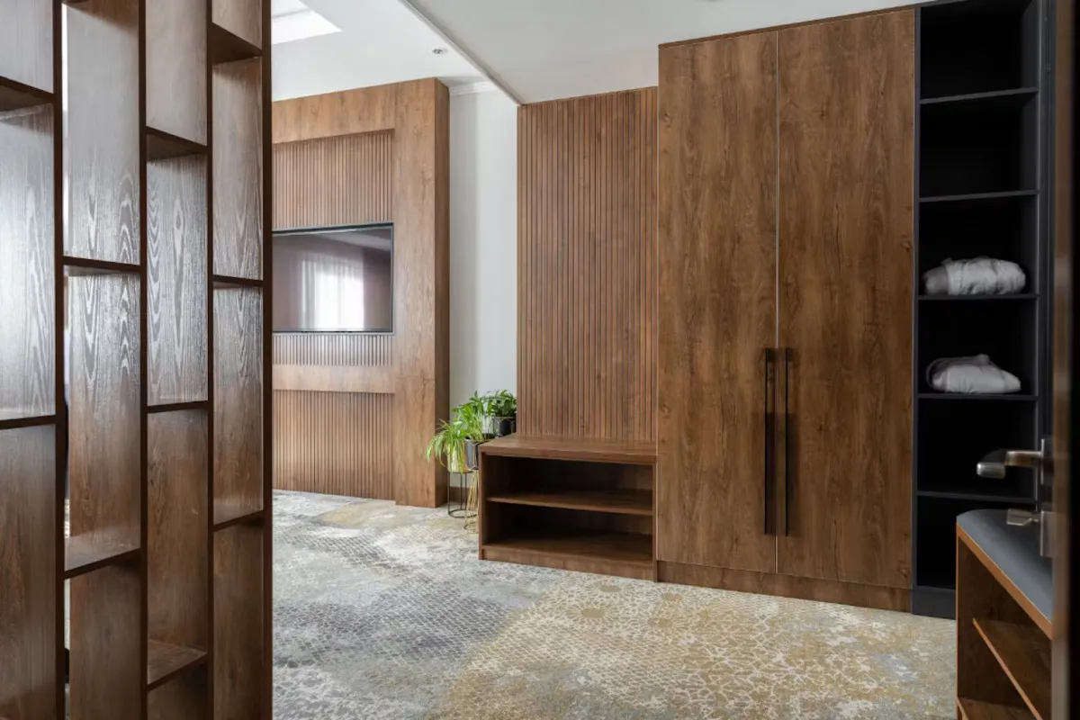 номер с отдельной гостиной и спальней. В номере: кровать king-size, гостиная-столовая зона, мини-кухня, 2 ванные комнаты